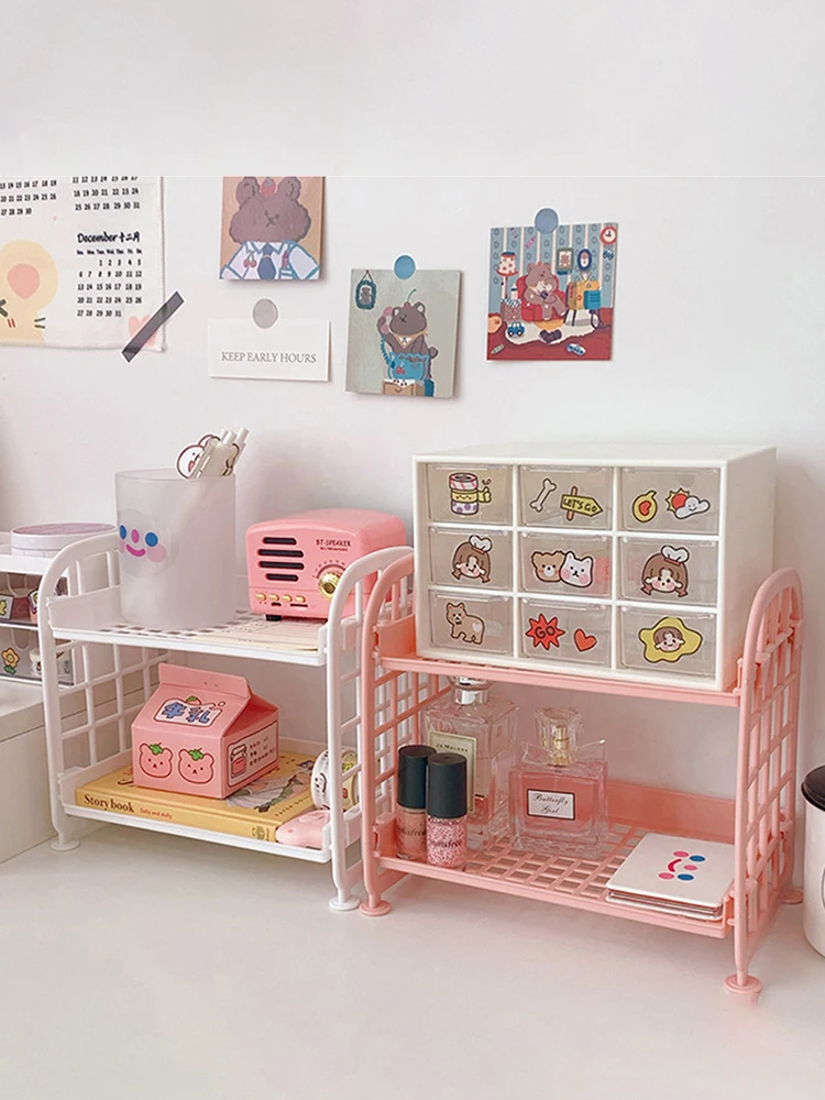 Com duas camadas bem distribuídas, oferece armazenamento adicional sem ocupar muito espaço. Perfeita para acomodar produtos de papelaria, livros, dispositivos eletrônicos, itens de beleza, acessórios de trabalho e muito mais.